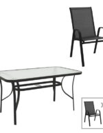 Τραπεζαρία Calan-Ensure pakoworld 5τεμ μέταλλο-γυαλί σε μαύρη απόχρωση 140x80x70εκ κωδ. 0060-130-000164