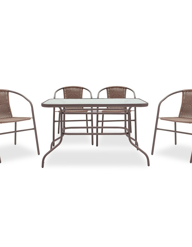- Σταθερός σκελετός από μέταλλο με αντοχή στην καταπόνηση και στη φθορά. Κυρίως σώμα έδρας-πλάτης από εξαιρετικής ποιότητας PE rattan.