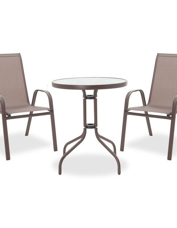 Τραπεζαρία Watson-Calan σετ 3τεμ pakoworld μέταλλο-textilene καφέ Φ60×70εκ κωδ. 0060-200-000308