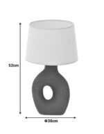 Κατασκευασμένο από υψηλής ποιότητας κεραμικό με διακριτική υφή, αυτό το φωτιστικό δεν είναι απλά μια πηγή φωτός, αλλά ένα πραγματικό έργο τέχνης. Το κωνικό υφασμάτινο αμπαζούρ συμπληρώνει ιδανικά τη βάση, διαχέοντας ένα απαλό και ζεστό φως που δημιουργεί μια φιλόξενη ατμόσφαιρα.