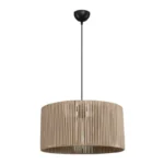 - Paper rope:Το “paper rope” ή “χαρτοσχοινί” είναι ένα είδος σχοινιού που κατασκευάζεται από χαρτί. Συνήθως, το χαρτί πλέκεται ή κυλιέται με τρόπο που να δημιουργεί μια εύκαμπτη, αλλά ανθεκτική δομή. Η χρήση του προσδίδει μια αίσθηση οικολογικότητας και φυσικότητας στον χώρο, καθώς το φως διαπερνά το υλικό και δημιουργεί ένα όμορφο παιχνίδι φωτός και σκιών. Επιπλέον, το φωτιστικό από paper rope είναι ελαφρύ και εύκολο στην εγκατάσταση, ενώ παράλληλα προσφέρει μια ιδιαίτερη πινελιά στη διακόσμηση του χώρου.