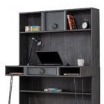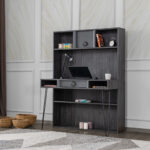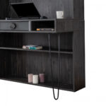 Γραφείο μαύρου χρώματος με ράφια και συρτάρια.