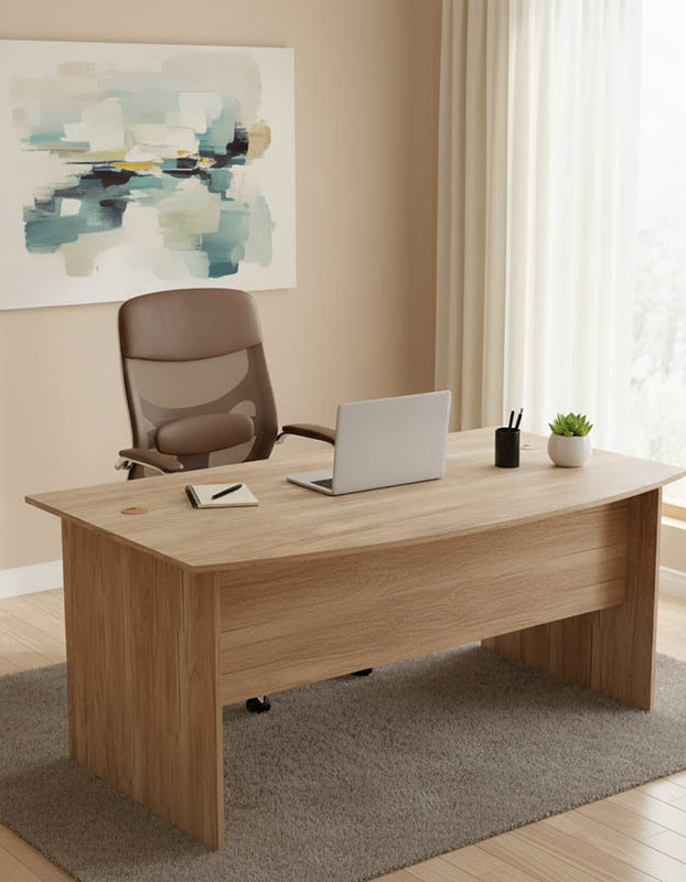 *Κύριο γραφείο: Επιφάνεια κατασκευασμένη από μοριοσανίδα με επένδυση μελαμίνης υψηλής ποιότητας. Η μοριοσανίδα, γνωστή ως chipboard, είναι ένα σύνθετο ξύλινο υλικό που κατασκευάζεται από μικρά κομματάκια ξύλου, συνήθως πεύκου ή ελάτης, κολλημένα μαζί υπό υψηλή πίεση και θερμοκρασία με τη χρήση ρητινών. Χρησιμοποιείται ευρέως στην κατασκευή επίπλων, εσωτερικών επιφανειών και δομικών εφαρμογών. Κατασκευάζεται από ανακυκλωμένα υλικά και είναι ανθεκτική σε καμπύλες, τριβές και άλλες φυσικές καταπονήσεις.
