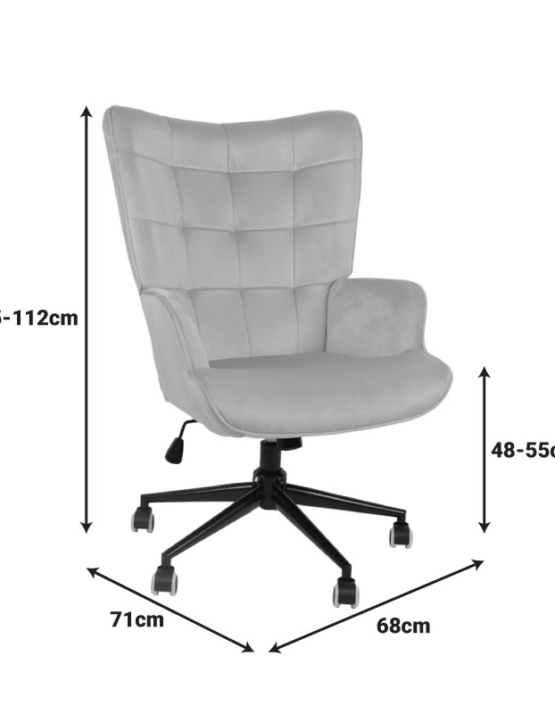 Ζήστε την απόλυτη άνεση και πολυτέλεια με την διευθυντική καρέκλα γραφείου Lobima. Το εργονομικό της design με την ψηλή, καπιτονέ πλάτη αγκαλιάζει το σώμα σας, προσφέροντας ιδανική υποστήριξη για πολλές ώρες. Το απαλό βελούδο προσδίδει μια πινελιά κομψότητας, ενώ η σταθερή βάση με ρόδες επιτρέπει την εύκολη μετακίνηση και προσαρμογή στον χώρο σας. Ιδανική για το γραφείο, το σαλόνι ή τη γωνιά ανάγνωσης.