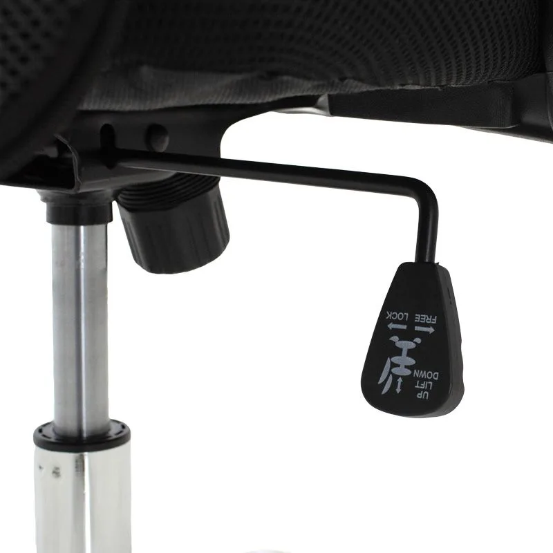 Η πλάτη είναι επενδυμένη με ειδικό ανθεκτικό διάτρητο δίχτυ/ύφασμα και η έδρα με ύφασμα Mesh που επιτρέπει την κυκλοφορία του αέρα και αποτρέπει την εφίδρωση του σώματος