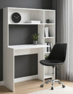 Αυτό το γραφείο συνδυάζει την αισθητική με τη λειτουργικότητα, προσφέροντας ένα άνετο και οργανωμένο περιβάλλον για εργασία ή μελέτη.