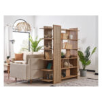 Βιβλιοθήκη με 5 ράφια αποθήκευσης και σχέδιο ρατάν για μοντέρνο σκανδιναβικό σχεδιασμό.