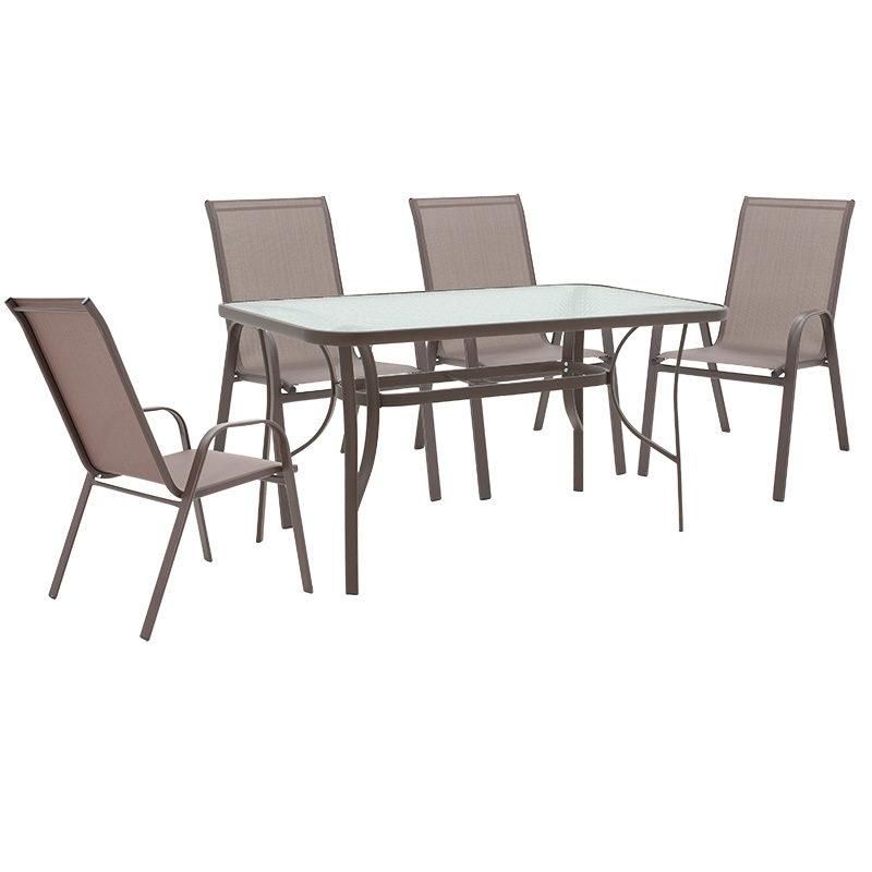 Τραπεζαρία Valor-Calan σετ 5τεμ pakoworld μέταλλο-textilene καφέ 110x60x70εκ κωδ. 0060-130-000048