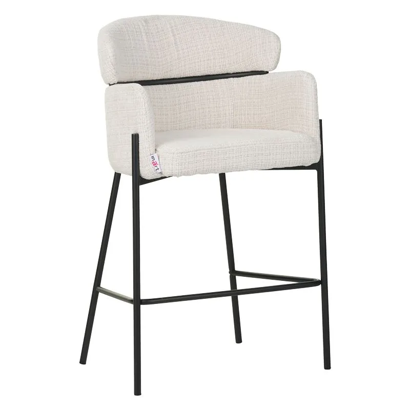 Σκαμπό μπαρ Tolerse Inart μπεζ ύφασμα-πόδι μαύρο μέταλλο κωδ.0060-029-000255