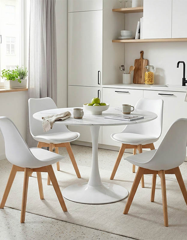 Τραπεζαρία Gaston-Balou I pakoworld σετ 5τεμ pp-mdf σε λευκό μαρμάρου απόχρωση Φ120×75εκ κωδ. 0060-200-001009