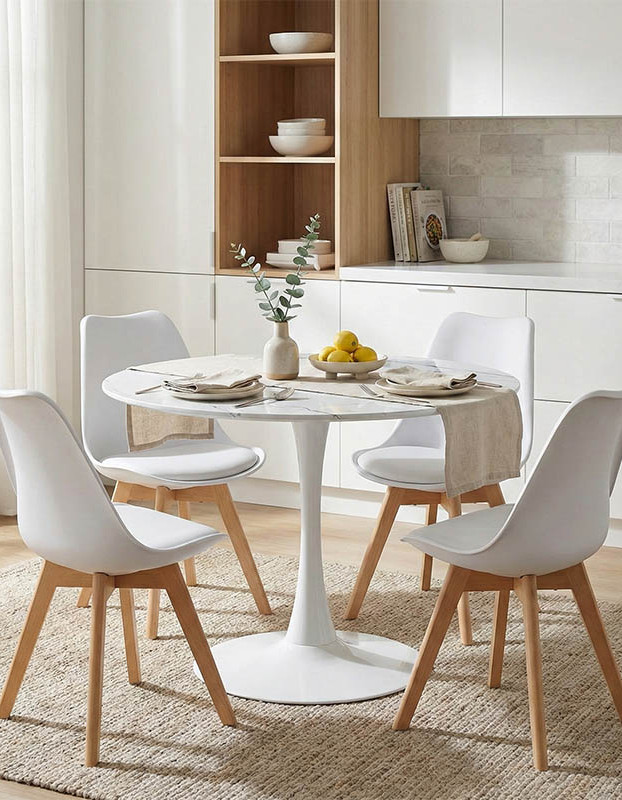 Τραπεζαρία Balou-Gaston σετ 5τεμ pakoworld MDF και pp σε λευκή-φυσική απόχρωση Φ100×75εκ κωδ. 0060-200-000472