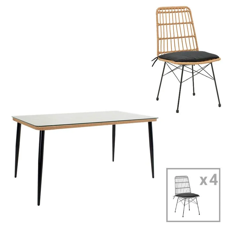 Τραπεζαρία Naoki U σετ 5τεμ pakoworld rattan pe σε φυσική απόχρωση και μαύρο μέταλλο 160x90x78εκ. κωδ. 0060-200-000964